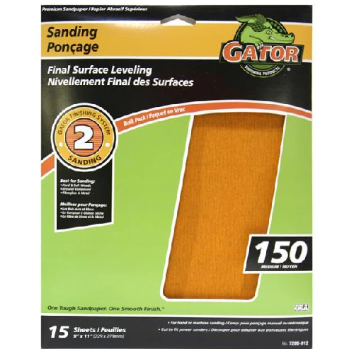 Prepare a surface for paint or stain with Gator sandpaper. Durable aluminum oxide grains create a smooth final finish. Resin holds the grains in place for continued performance. These premium sandpaper sheets measure 11 in L x 9 in W and come in packages of 15.