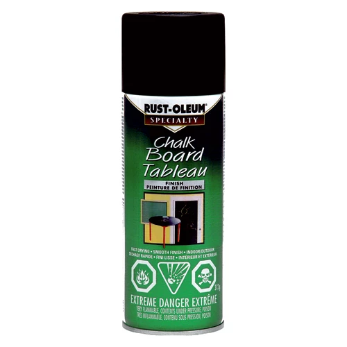 - Rust-Oleum Specialty Chalk Board Spray converts surfaces into a usable chalkboard