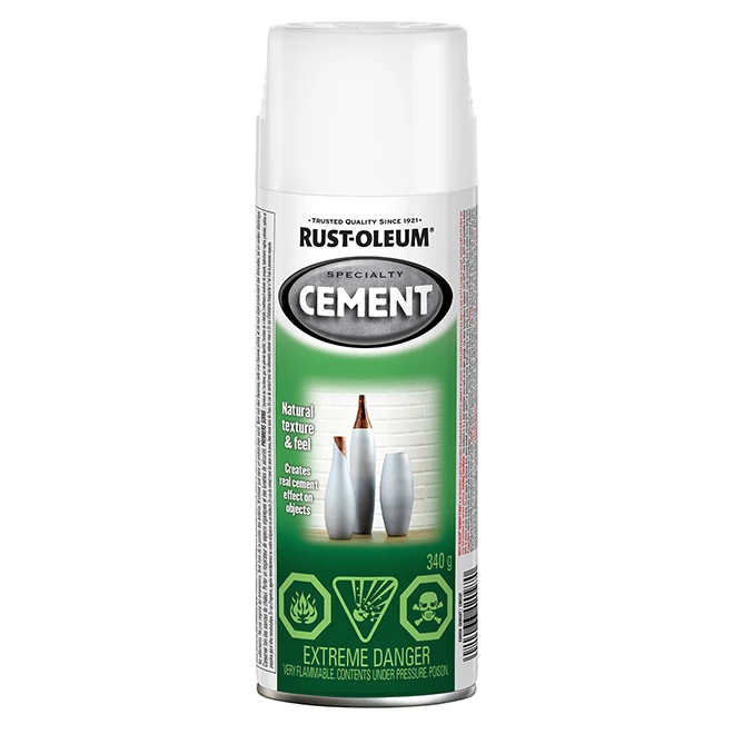 Rust-Oleum(R) cement paint is an innovative paint that provides the natural look and feel of cement in a spray can. Ideal for your decorative projects, this faux finish transforms any object to look as if it is made of cement and includes a manufacturer’s warranty.