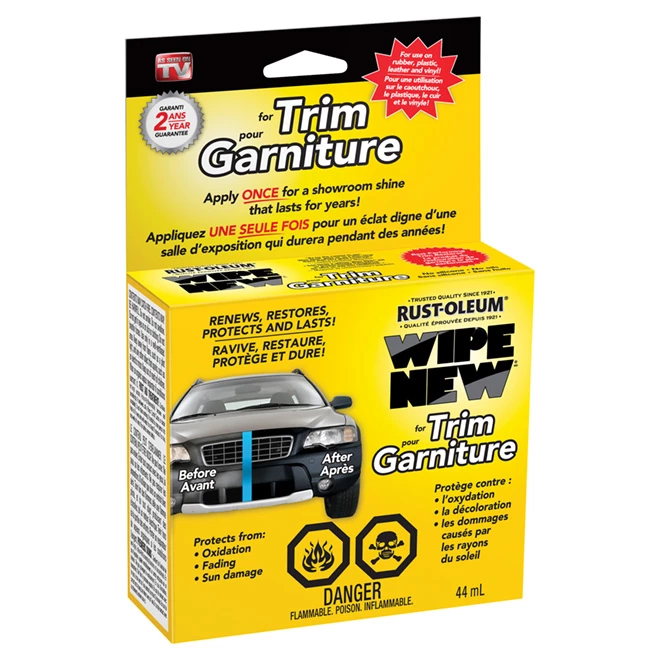 Protects from oxidation, fading, sun damage. Restores and renews, exterior: bumpers and trim, mirror housing and faded plastic, interior: dashboards, door panels, leather and vinyl, seats and trim. For use on rubber, plastic, leather and vinyl. For best results apply in indirect sunlight and protect the surface from moisture for 24 hours post-application